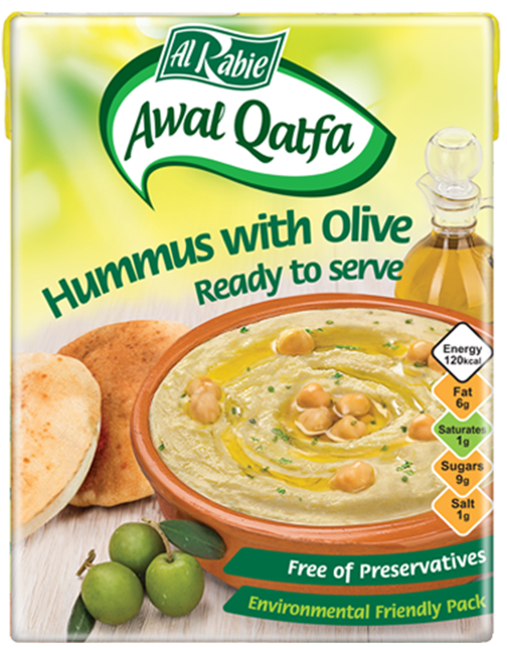 Chickpeas, Water, Tahina (Sesame Paste), Olives, Salt, Acidity Regulator (Citric Acid), Olive Oil.